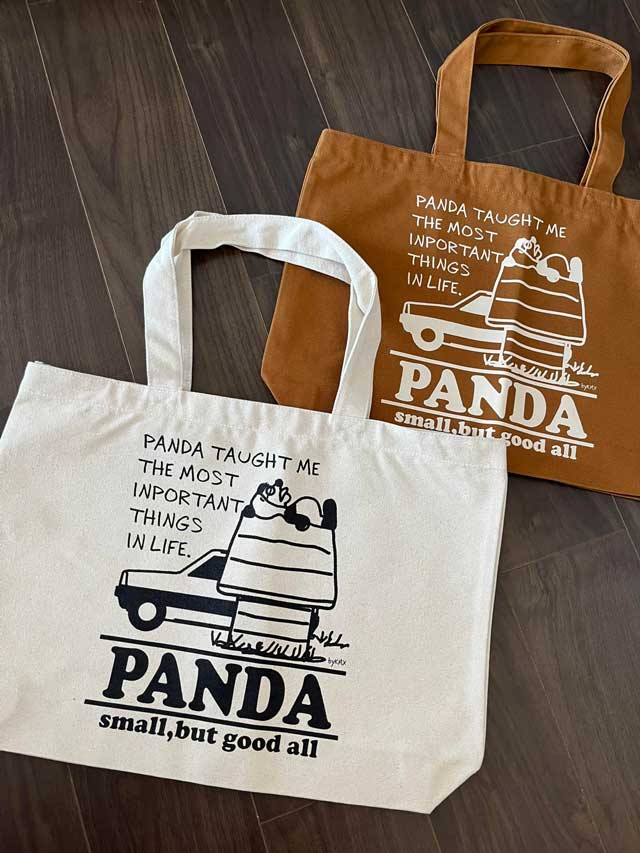 オリジナルパンダデザインのTシャツ、トートバッグ等