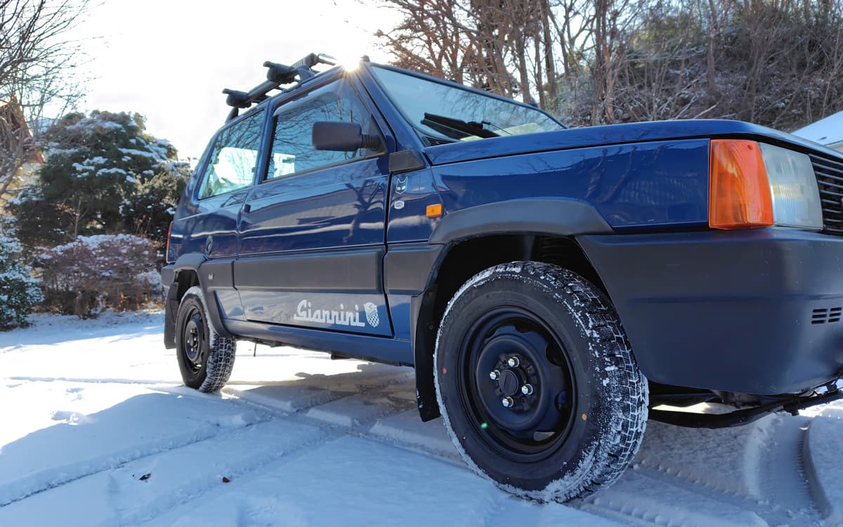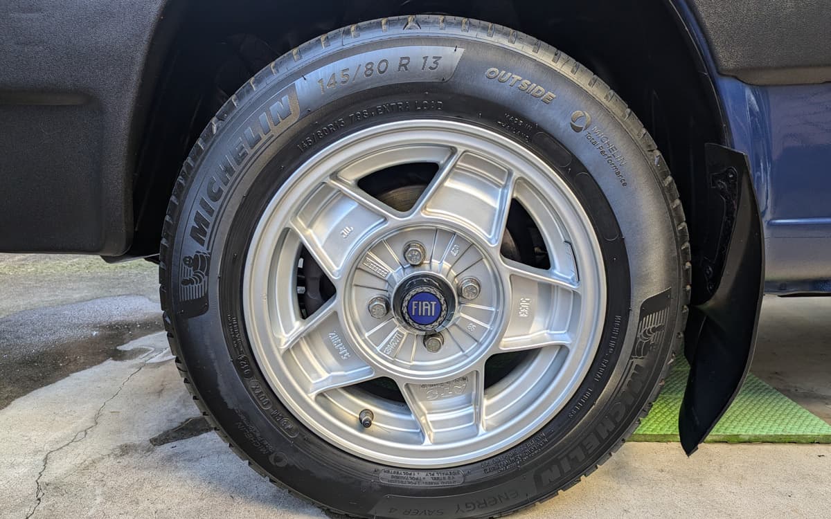 昨年、maupanda さんから引き継いだスパルコ・クロモドラのアルミホイールを装着しました。スポーティな見た目に満足しています。製造から30年のパンダには厳しい気候となる中で負荷を軽くできるようバルブをLEDにしたり、真夏の猛暑の中は乗らないようにしたりと、末長く乗れるように気を遣いながら維持をしています。