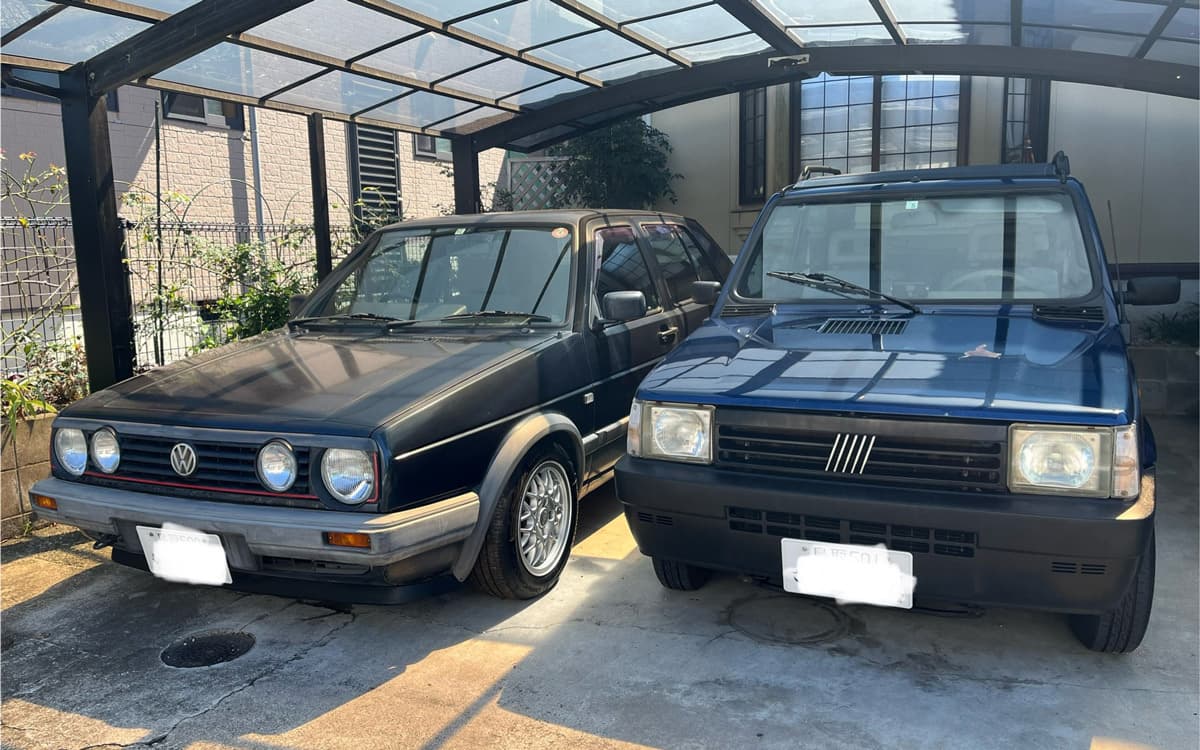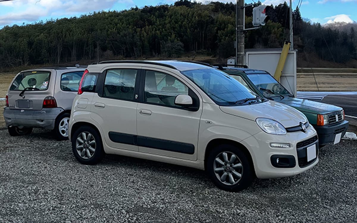 見ての通り、いわゆるイタフラ車が好きです 。所有車両は、PANDA1とPANDA 3(家族車両)とRenault Twingo 1、そしてレストア待ち不動状態のFiat500(1967年式)。