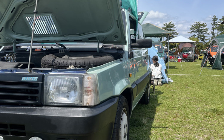 1992年にパンダとの出会いがあり、10万キロ走行の個体をコミコミ20マソで手に入れました。その後、毎週エンジンオイルを継ぎ足すこととなり、ヤフオクで入手したエンジンに換装!ブレーキ周りのオーバーホールを行い、2016年に生涯1度の聖地巡礼としてパンダリーノにエントリーしましたが、熊本地震に見舞われ自宅は大規模半壊。勤務先は操業停止状態の中、理解ある上司と同僚に背中を押されて生後1歳の息子と慈悲深く美しい妻の3人でパンダリーノ初参加を果たしました。その後は、毎年パンダリーノにコロナ影響と勤務先の合併による欠席を除き出席しています。