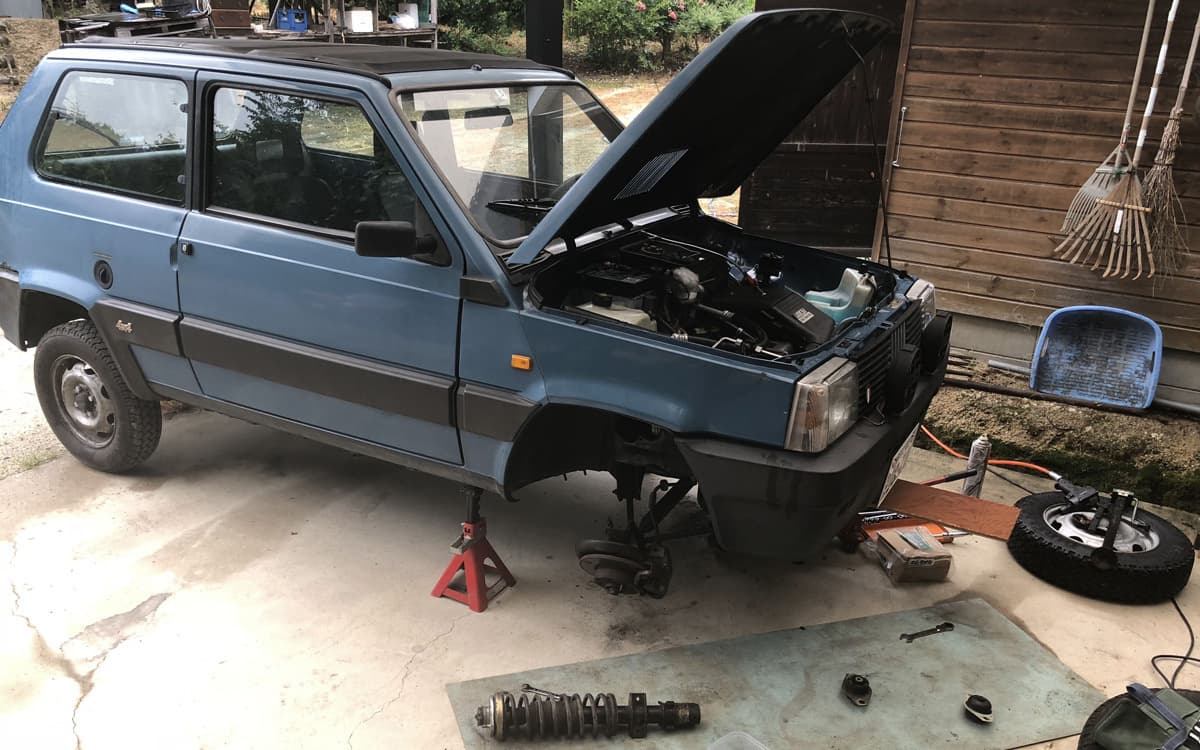 1996年に白pandaをタダで手に入れ、レストアして1997年5月うす黄色pandaオーナーに。1999年、一度目の車検を受けてすぐに事故る。カーグラの売りますコーナーに同じ年代の同じ4x4が奇跡的に売りに出ていて、横浜まで緑pandaをお迎えに行き、ニコイチにて、2000年、廃車の危機を脱出。