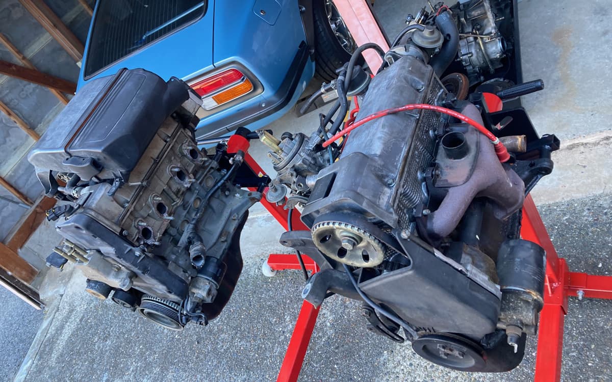 28歳の時初めて買った車がPanda45でした。2年落ちの中古車、その3年後くらいにヘッドガスケット交換時にエンジンが煙を吐き「このままでは返せない」と整備担当者に言われ言われるままにオーバーホール。その時にヘッドをいじったせいで病みつきになりずっと保有することに。その間いろんなことがありました。でも何とか乗り切った2年前、福山でラジエッターから煙が・・・今回は今のチューナーブラストオフさんにお願いをしました。ここまでもいろんな話が実はあります。そしてエンジンヘッド交換、シリンダー交換、この経緯もいろいろあります。(詳しくはすぎりんさんに話してあります)もう降りる寸前まで行きましたが、奇跡かどうかはわかりませんが復活。今に至ります